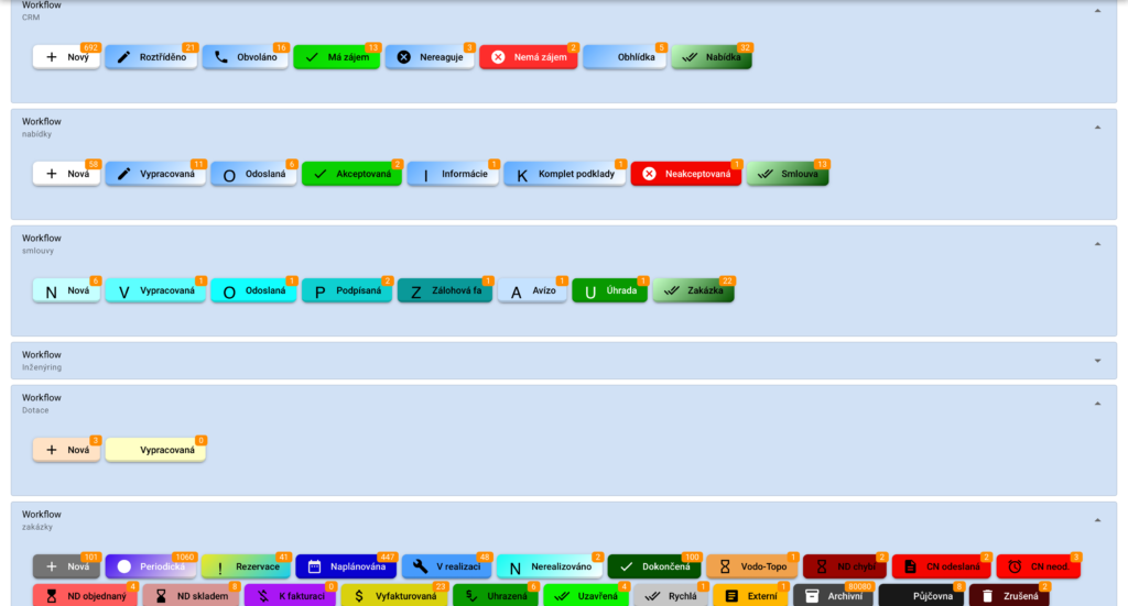 - okamžitá kontrola stavu procesů bez nutnosti spouštět jakýkoliv report, stačí „oční test“